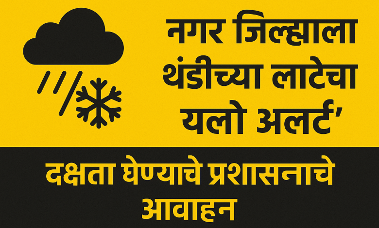 अहिल्यानगर : जिल्ह्यामध्ये सद्यस्थितीत कडाक्याची थंडी पडत असून, अनेक ठिकाणी किमान तापमान १० अंश सेल्सिअसपेक्षा खाली गेल्याचे भारतीय हवामान खात्याच्या नोंदीवरून स्पष्ट झाले आहे. या पार्श्वभूमीवर, हवामान खात्याने अहिल्यानगर जिल्ह्यासाठी दि. ०९ ते ११ डिसेंबर २०२५ या कालावधीत ‘येलो अलर्ट’ (Yellow Alert) जारी केला असून, जिल्ह्यात तीव्र थंडीची लाट येण्याची शक्यता वर्तविली आहे. या कालावधीत नागरिकांनी आरोग्याची काळजी घ्यावी, असे आवाहन निवासी उपजिल्हाधिकारी तथा जिल्हा आपत्ती व्यवस्थापन प्राधिकरणाचे मुख्य कार्यकारी अधिकारी दादासाहेब गिते यांनी केले आहे.